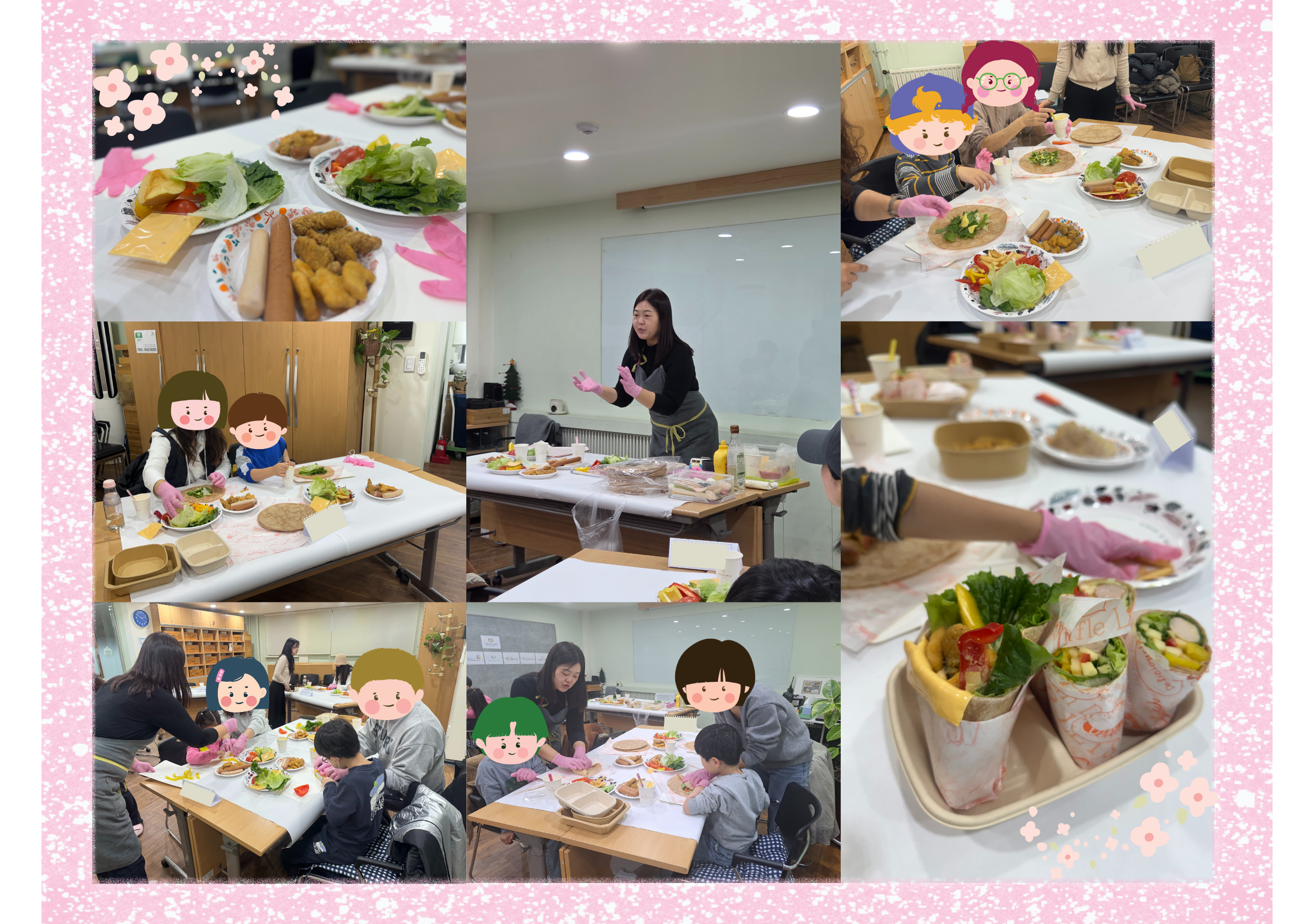아동과 가족이 함께 식재료를 탐색하고 손질하고, 다양한 재료의 조합으로 샌드위치와 치킨랩을 만들면서